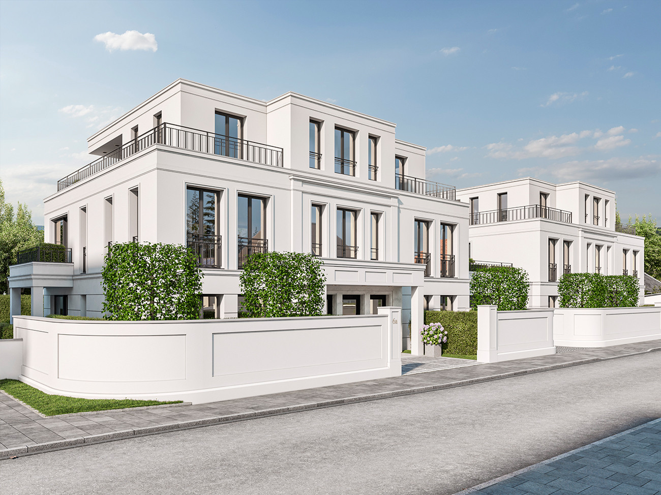 The villa residence Hauensteinstraße 6 forms an ensemble of two stylistically related city villas in the best classicist tradition: all in white, generous in dimension and the villa-typical balance of symmetry and asymmetry, natural, lively and with an independent character and great openness.