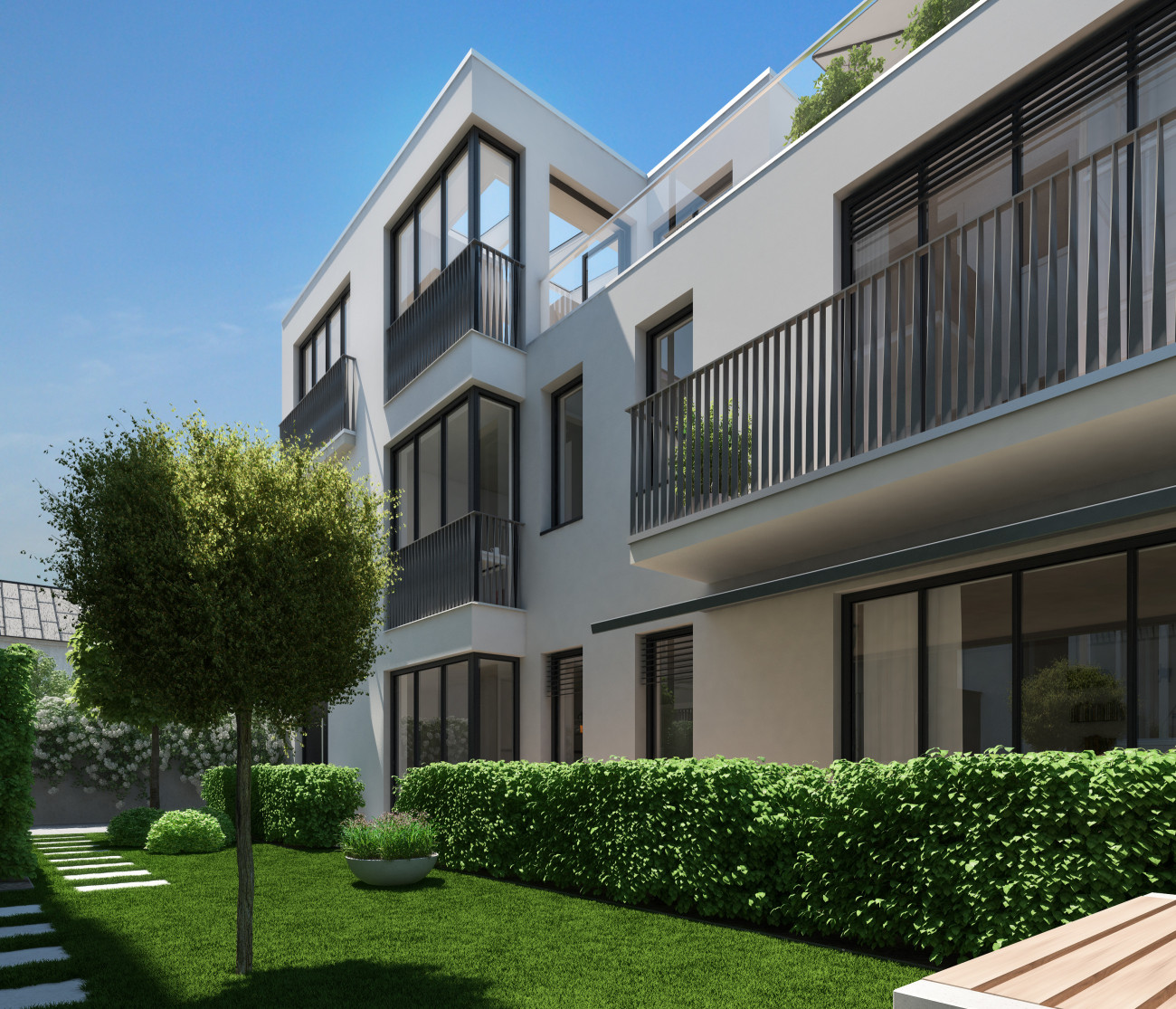 Alle Wohnungen zeichnen sich durch eine hohe Wertigkeit, eine harmonische Materialauswahl und eine überdurchschnittliche Bau- und Ausstattungsqualität aus.