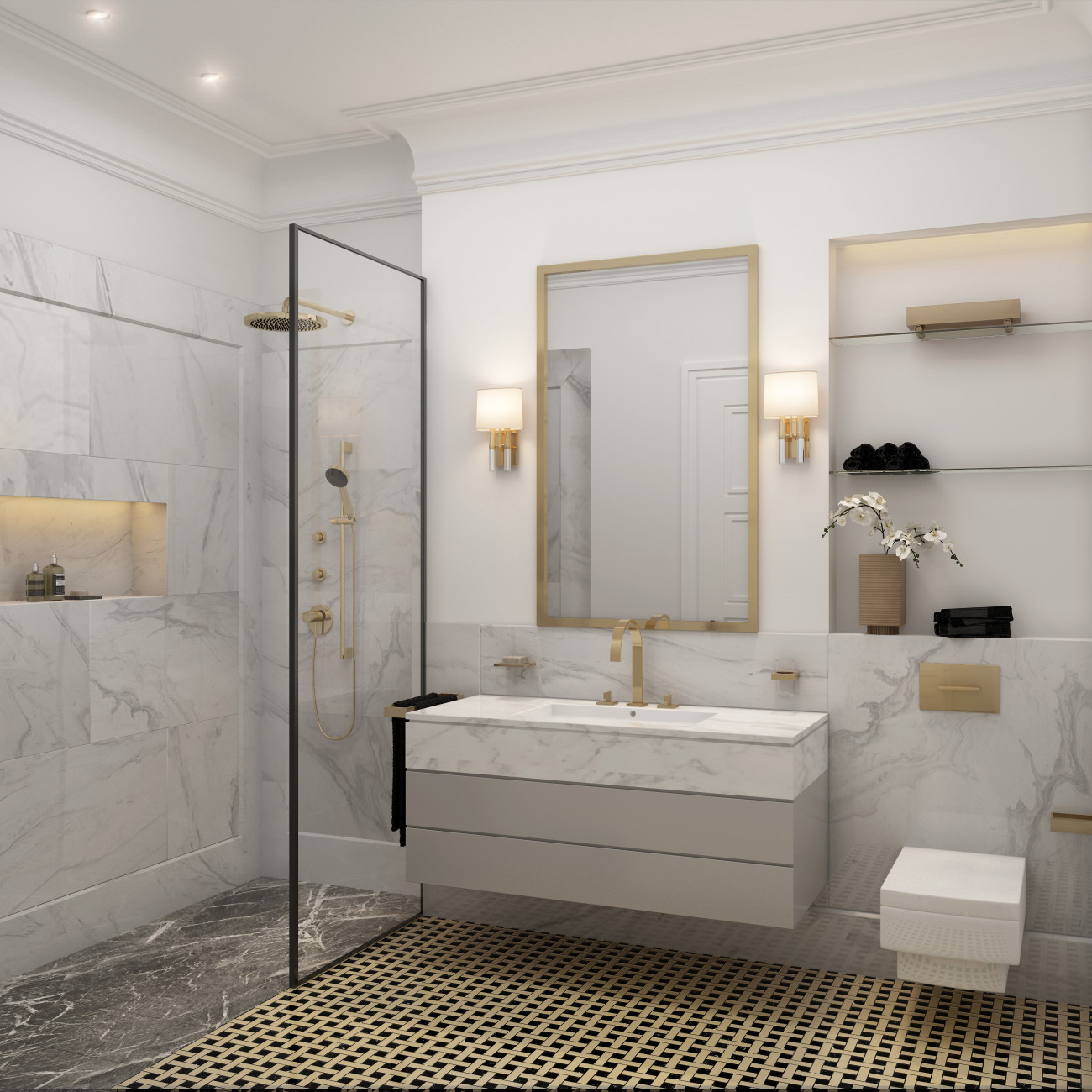 Anspruch und Qualität in jedem Detail definieren im Stadtpalais Widenmayer den hochklassigen Charakter des Hauses und seiner Wohnungen. Die historische Bausubstanz und die enthaltenen Ausstattungselemente wie Stuck, Natursteinböden oder Parkett verlangen allerdings besonderes Fingerspitzengefühl. Sowohl die Restauration bestehender erhaltenswerter Elemente als auch das feine Abstimmen notwendiger Ergänzungen auf die historischen Details bedeuten einen hohen Aufwand.